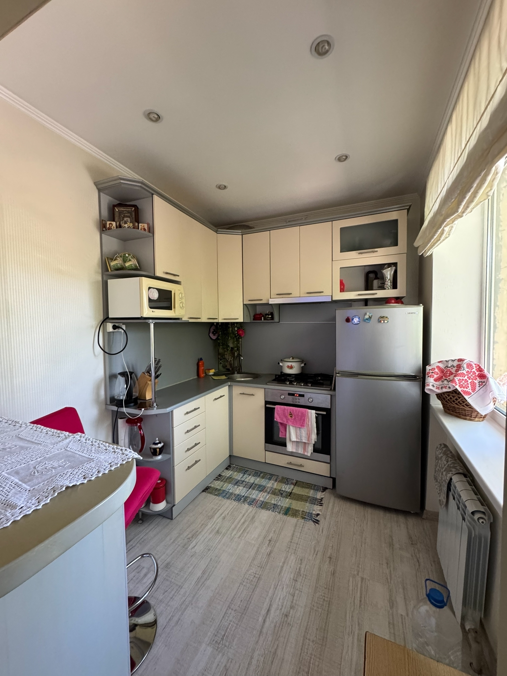 Этаж 3/3, общая площадь 44м2 Квартира светлая, уютная. Крыша не течет. Вся мебель и техника остается, можно сразу заезжать и жить. В санузле теплый пол. Свое автономное отопление. Рядом остановки, рынок Объединенный, магазины, «Молоко», школа. |